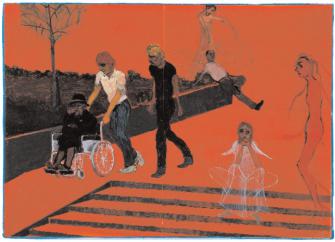 Realitätsfragmente sind manchmal hinein collagiert wie das Tableau einer glücklichen Belegschaft. Eindeutiges neben Rätselhaftem, vieles bleibt entrückt und verträumt. Renée nennen sich weibliche Skinheads, die man an ihren Frisuren erkennt. "Ich bin religiös", sagt Kai Althoff. "Ich schätze es zutiefst, wenn jemand sein Leben Gott widmet. Ich glaube, das gibt dir wirklich das Gefühl frei zu sein. Du verbringst deine Zeit mit Gott, und er gibt dir die glückliche Gelassenheit, wirklich damit zu beginnen, seine Schöpfung zu erkennen und diesbezüglich zu handeln, ohne Hinderung. (Flash Art, Nr. 224, 2002, S. 97)