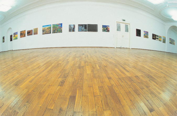 Abel Auers Bilder sind in Auseinandersetzung mit der Landschaftsmalerei des 19. Jahrhunderts entstanden. Und sie sind inspiriert von frühen Seher fahrungen des Künstlers. Abel Auers Großvater war Landschaftsmaler, das großelterliche Haus voller Bilder. Selbst nun Landschaften zu malen, bedeutet auch Rückbezug auf die eigene Kindheit. Wie Archetypen wirken die Motive seiner Gemälde und der Aquarelle und phantasievoll wie von Kinderhand gemalt, bunt und grell, pink, gif tgrün, rauschhaft, manchmal am Rand des Erträglichen. Die Idylle wird aggressiv und ist in der geballten Kraft der Farben nur schwer zu ertragen. Es sind Traumwelten, Gegenwelten zur eigenen urbanen Lebenswelt - dem Randgruppenviertel der Großstadt, "Taxidriver"-Milieu -, obsessiv gemalt. Wohnen und arbeiten – das ist bei Abel Auer wie in einer Höhle, die Fenster verhüllt, der Raum voller Bilder. Eine eigene Welt von solcher Wucht, daß Imagination und Wirklichkeit zusammen fallen in der Vision, daß, öffnete man die Fenster, die Welt draußen nicht anders aussähe. Als Kai Althoff diese Bilder sah, machte es ihm Mut und große Freude, auf sie malerisch zu antworten.