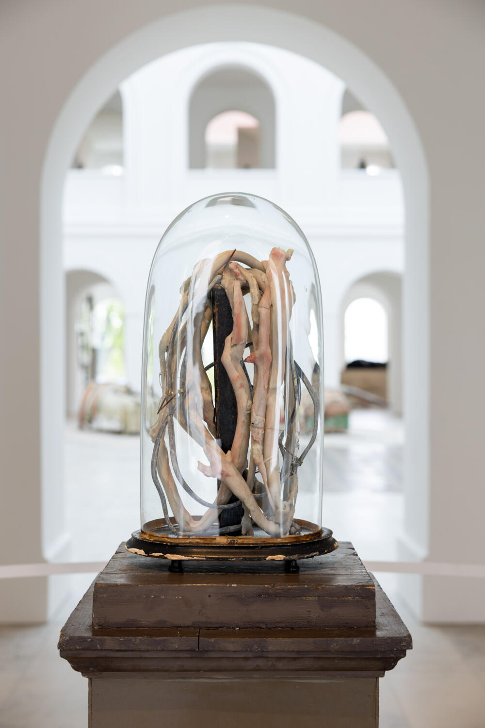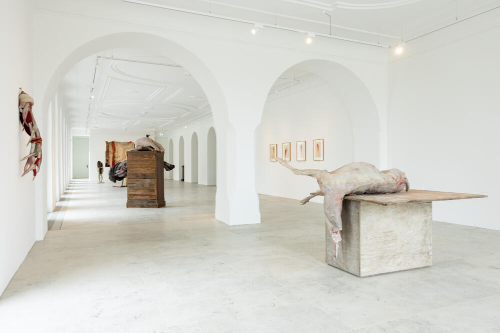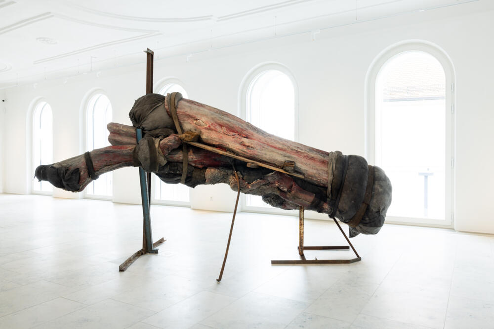 Berlinde De Bruyckere hat Arcangelo (Freising), 2021-2022 für das wiedereröffnete Diözesanmuseum geschaffen, eine monumentale und zugleich berührende Skulptur eines Engels aus Bronze, ummantelt von patiniertem Blei. Den Menschen bei weitem überragend und doch nahbar, erfüllt der Arcangelo mit seiner Präsenz den Lichthof. Um diesen geheimnisvollen Engel zeigt nun das Diözesanmuseum eine Ausstellung der belgischen Künstlerin in den benachbarten Sälen, die von den reichen historischen Sammlungen des Museums sowie der Geschichte des Hauses inspiriert ist. Die Figur des Arcangelo, entwickelt während des ersten Covid Lockdowns, ist auch angeregt von all die Pflegekräfte, die sich den einsam in Isolation sterbenden widmeten.