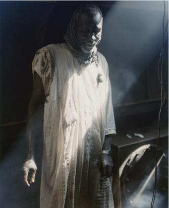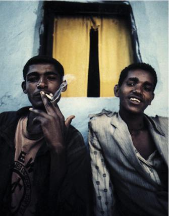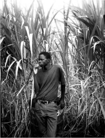 Hinter jedem Portrait, hinter jeder „Situation“, verbirgt sich gleichwohl eine Geschichte. Wir sehen eine schöne Frau, und nur das rote Buch mag als Hinweis gelesen werden, dass sie eine einheimische Hilfsorganisation gegen Analphabetismus leitet. Da ist ein lässig gekleideter Mann im Schilf, und was unpolitisch wirkt, ist auch ein Plädoyer für eine nicht genmanipulierte Landwirtschaft im Rückgriff auf bewährte Methoden, nämlich die Schädlinge durch „Zäune“ aus Schilfgras von den Feldern abzuhalten. Der Fußballer mit seinem verwundeten Knie hat nie ein Fußballstadion von innen gesehen – das ist allein der Aufnahmeort –, sondern nur in den Slums von Nairobi gespielt, und der geheimnisvoll aus dem Dunkel blickende Mann mit leuchtend grünem Hut ist ein Flüchtling aus Simbabwe.