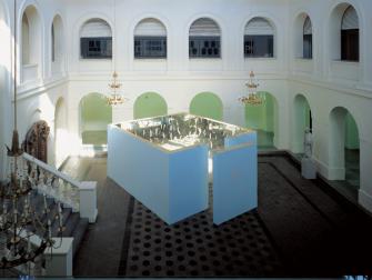 In ihrer Einzelausstellung fasziniert zunächst das Wunderwerk des Spiegels, der dem Betrachter sein eigenes Bild enthüllt. Die Verblüffung nach wie vor über die optischen Effekte, das Entzücken über die Täuschung, die Illusion. Man tritt ein und kostet die Wirkung seiner Bewegungen aus. Phantastische Transpositionen in inexistente Räume wie auch Maschinerien zur Produktion von unglaublichen und zauberhaften Schauspielen haben wie man weiß eine lange Tradition. Jurgis Baltrusaitis erzählt in seiner Geschichte des Spiegels, wie aus den verspiegelten Möbelstück-Kabinetten in den Kuriositäten- und Raritätenkammern des 17. Jahrhunderts ganze Spiegelsäle und Spiegelgalerien werden. In der Ars Magna lucis et umbrae (1646), einem Werk in der Tradition der Katoptrische(n) Magie oder wunderbare(n) Darstellung der Dinge durch die Spiegel des Hero von Alexandria (2. Jahrhundert vor Christus) etwa ist ein kleines Haus abgebildet (ca. 6,50 x 3,50 m) – es befand sich einem Fürstenpalast in Rom -, dessen gesamter Innenraum mit Spiegeln bedeckt war. Beim Betreten geriet die Umgebung in Bewegung, die Menschen wurden zu Akteuren in einem Schauspiel, dessen Programm mit dem Satz beginnt: "Du siehst dich ins Unendliche vervielfacht..." Wie raffinierter Zeitvertreib und vernünftige Kurzweil, Vergnügen und Lernen, Unterhaltung und Aufklärung sich in einer "kunstvollen Wissenschaft" verbanden (Barbara Maria Stafford), so gehören die Lust am Schauen, der visuelle Reiz und das Nachdenken in Gloria Friedmanns Installationen zusammen: nach der Reflexion im Spiegel also die Reflexion im Denken. Den Spiegel setzt sie ein als Faszinosum wie als Medium der Selbsterkenntnis und Metapher der Wahrheit.
